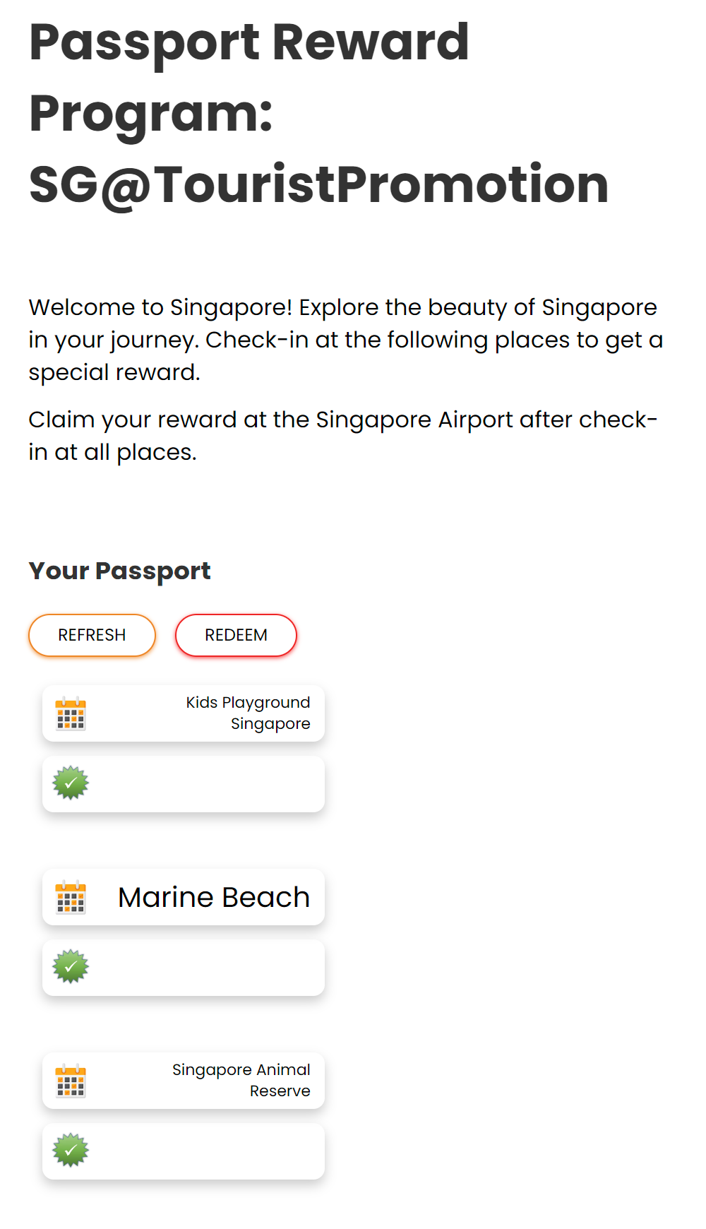 It is designed to reward users who visit a list of venues or stores. It can be used for tourist promotion, a civic duty program by a city, cross-brands marketing or seasonal promotion by a shopping mall. Every users can participate in this program, no registration is required.