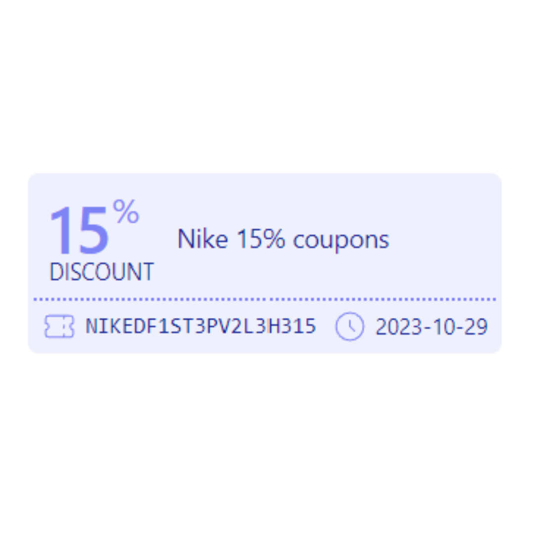 Purchase a 15% Nike Online Coupon to be used in the online store. Send it to your friends as an e-gift!